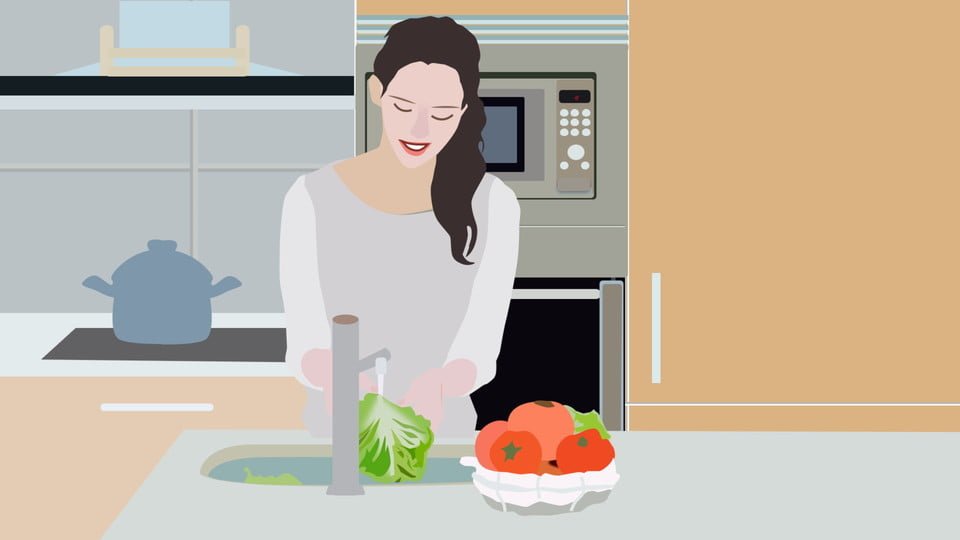 เช่นเดียวกับการล้างจาน การเปิดน้ำให้ไหลผ่านผักและผลไม้ ต้องใช้น้ำเยอะและอาจจะล้างผักผลไม้ได้ไม่สะอาด ฉะนั้นจึงแนะนำให้ล้างโดยการเปิดน้ำใส่ซิงค์หรือกะละมัง แล้วนำผักกับผลไม้แช่ลงไปดีกว่า
